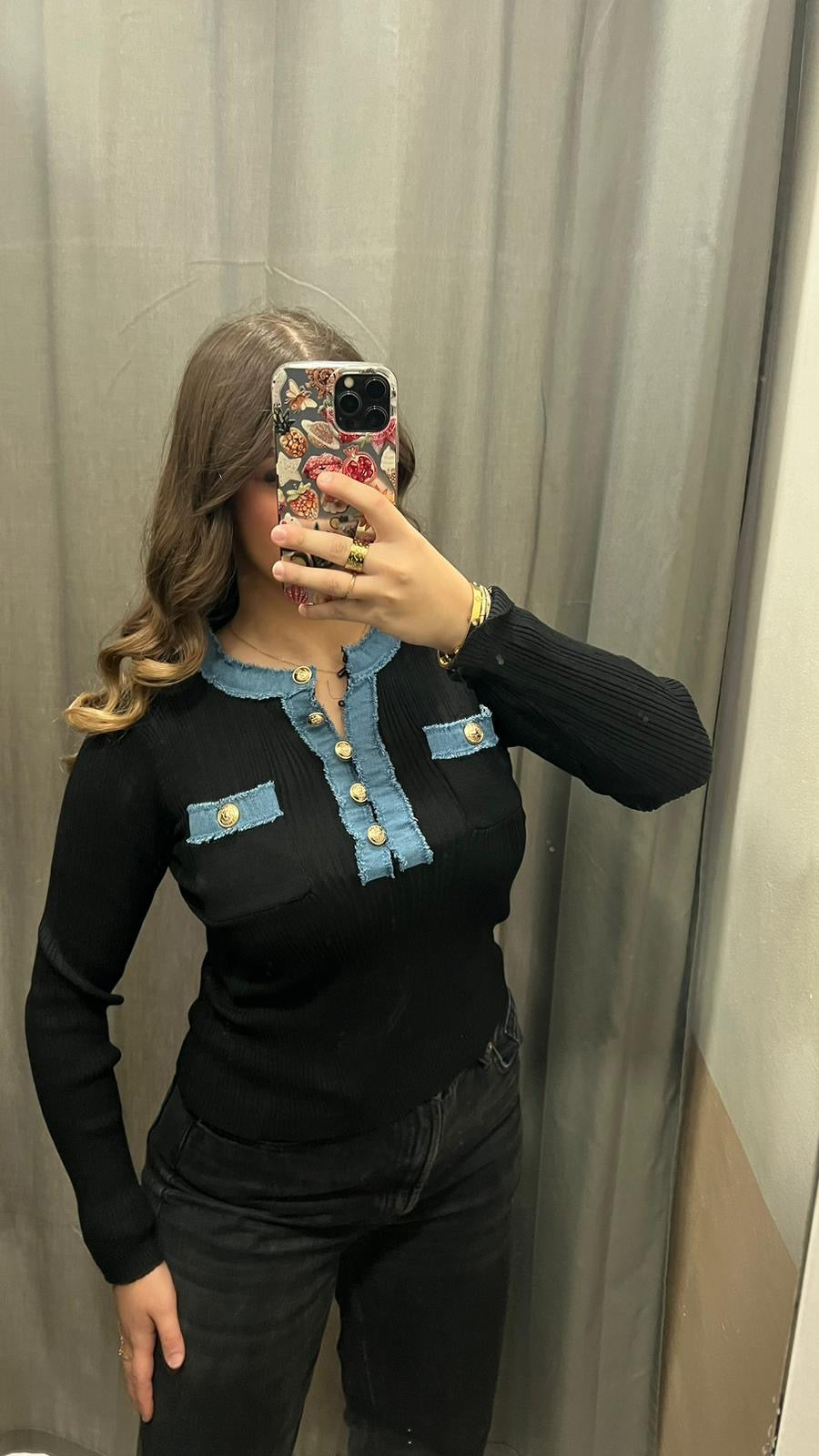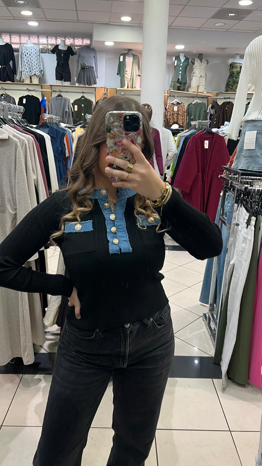 Haut Alina Manche Longue Noir